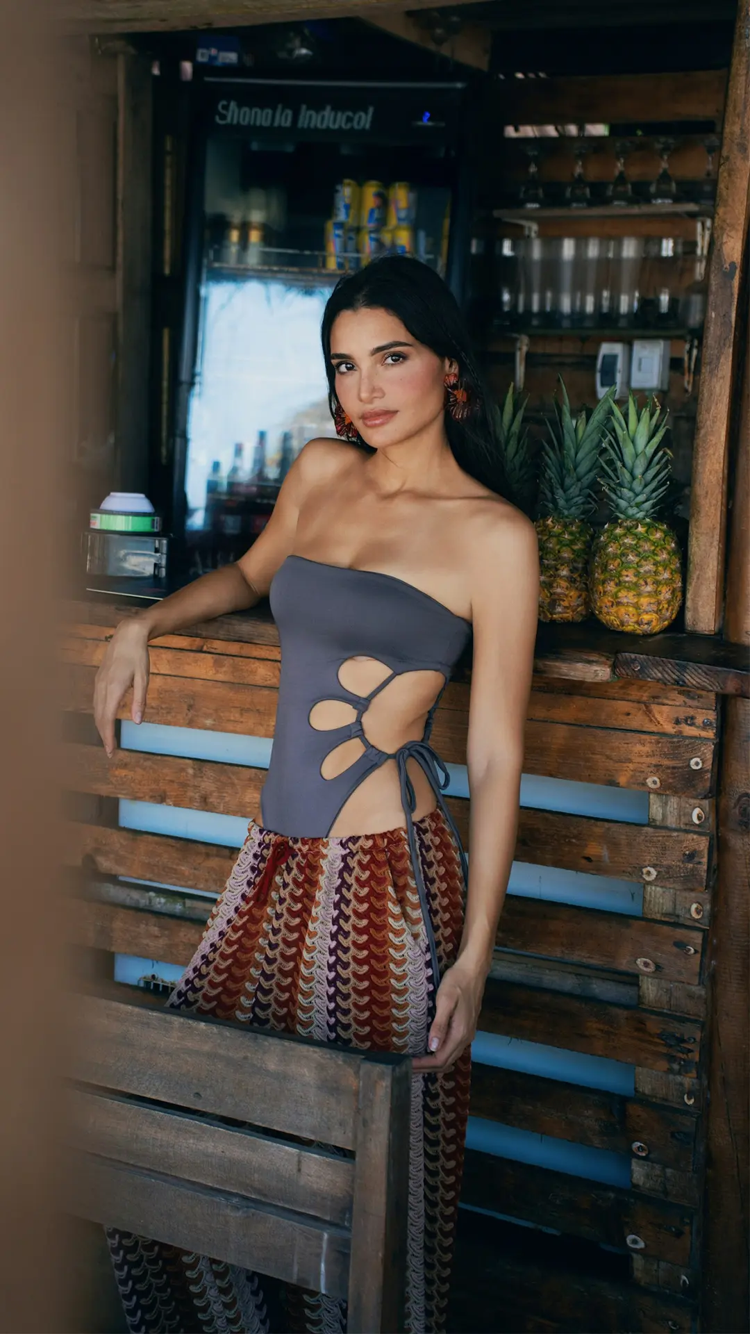 Fuera de stock$ 40.000Top fabricado con tela base jabón con una composición 93 % poliéster y 7 % spandex.